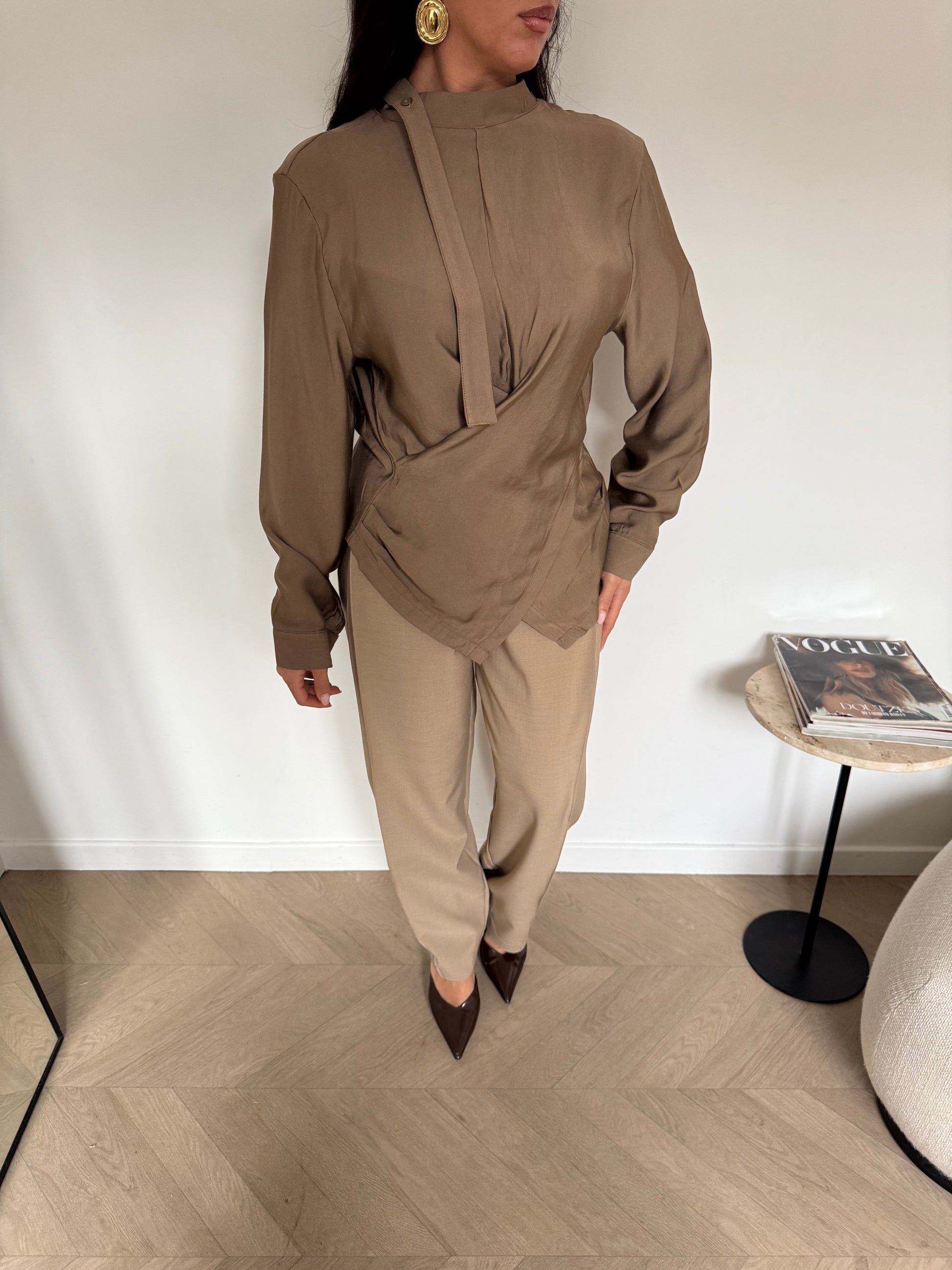 Chemisier col haut  Composition :  70%LAINE 30%POLYESTER Le mannequin porte une taille S/M