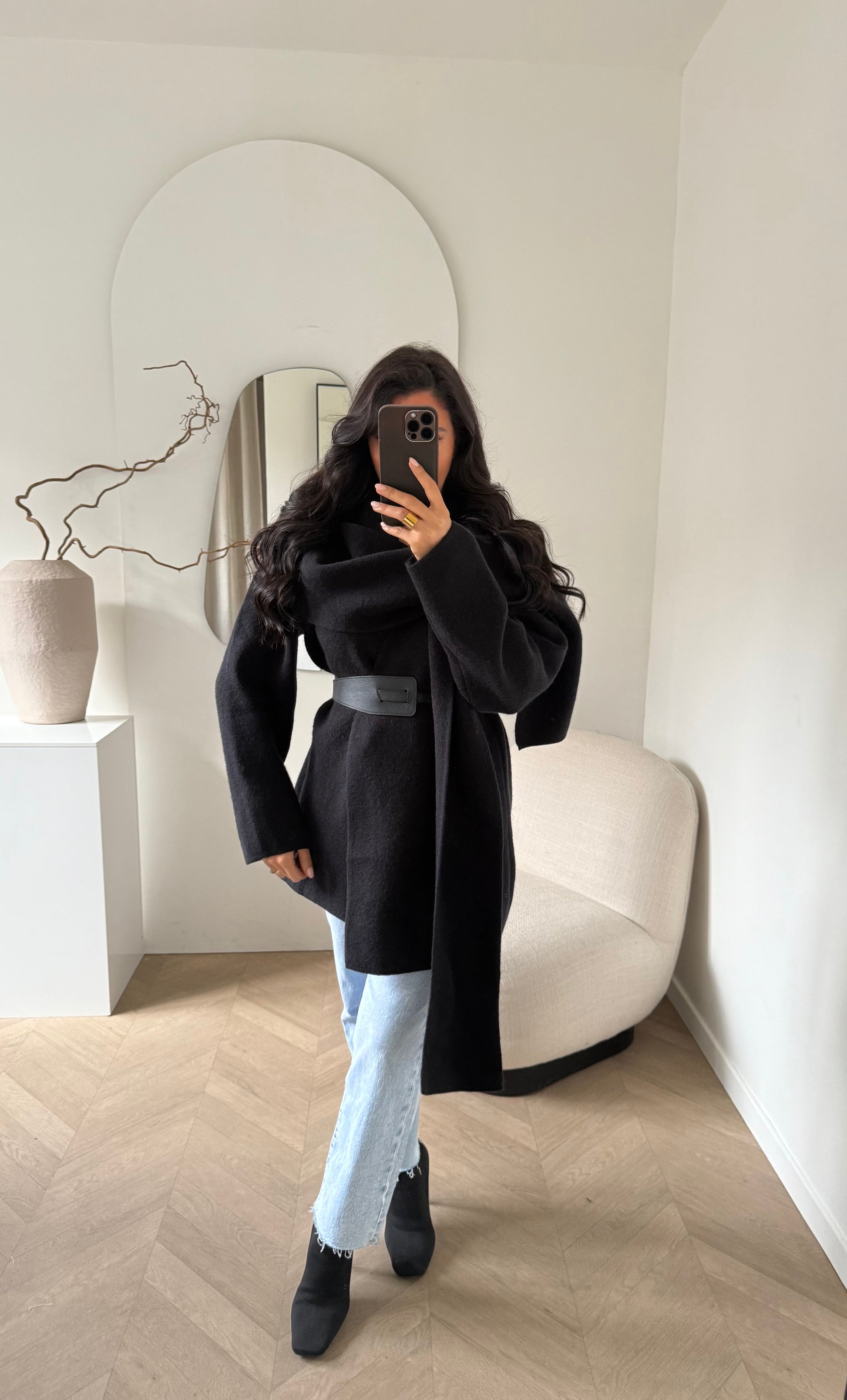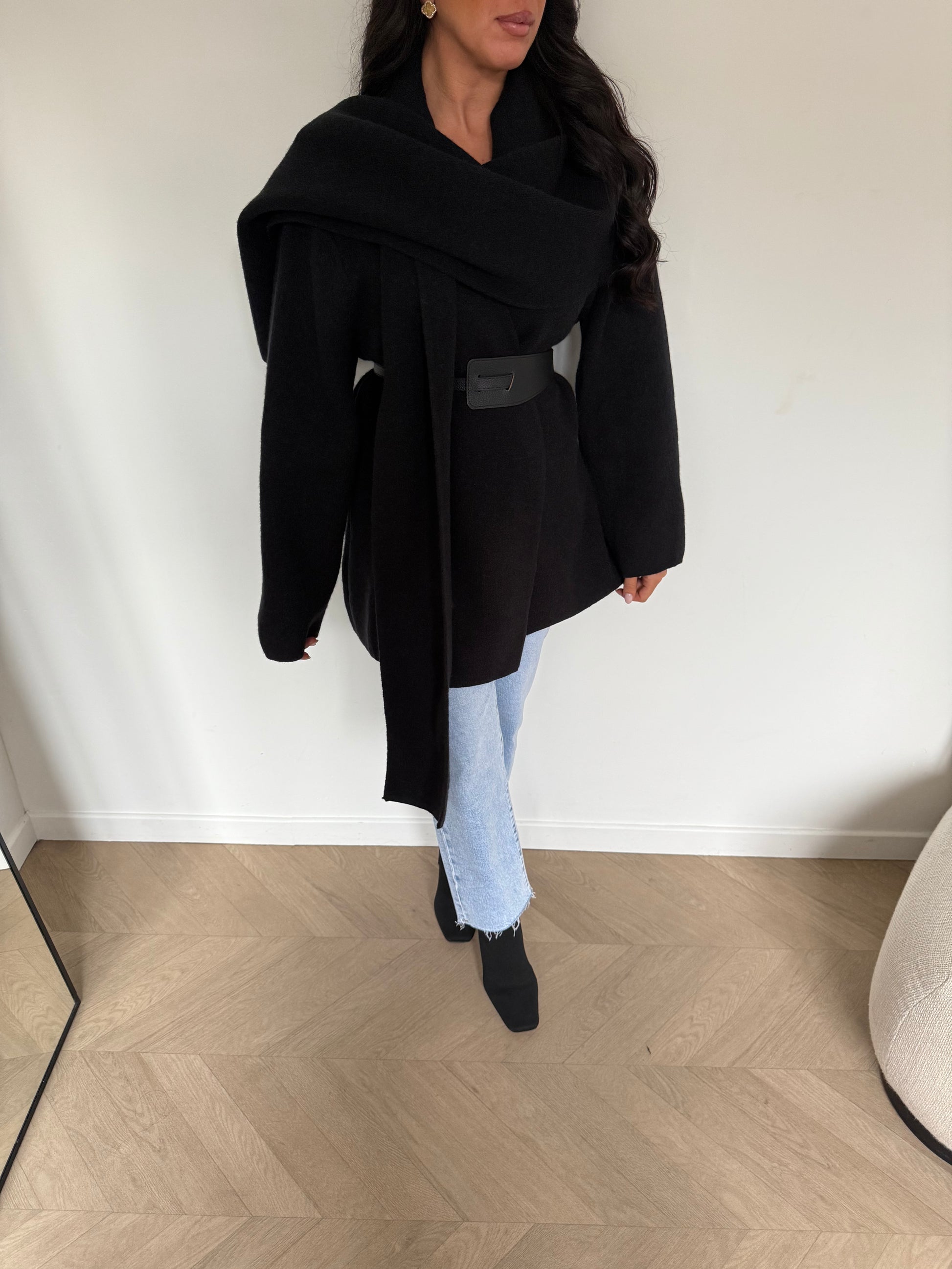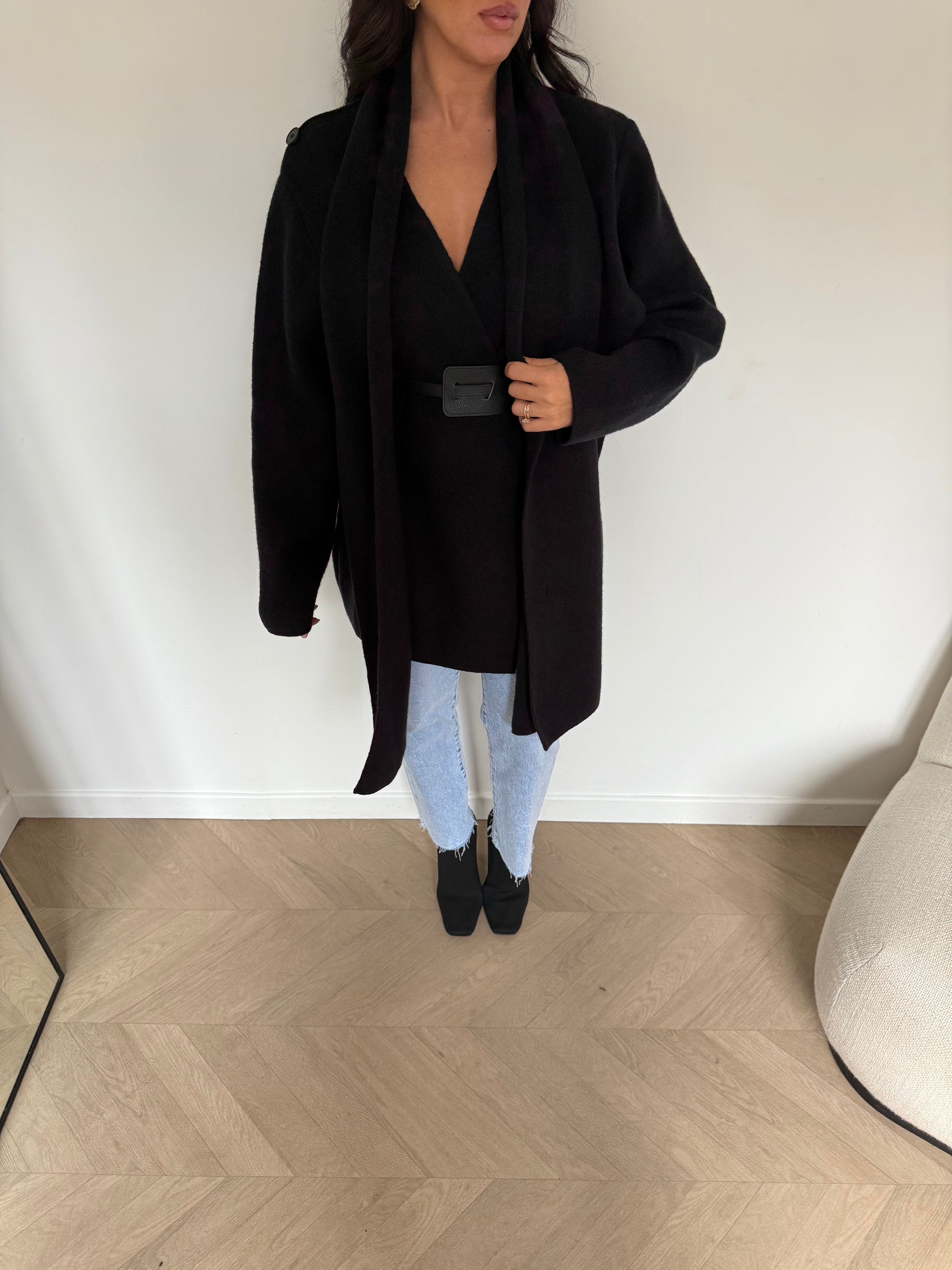 Gilet écharpe avec ceinture  Composition :  64% POLYESTER 23% POLYAMIDE 13% ACRYLIQUE Le mannequin mesure 1m60 et por...