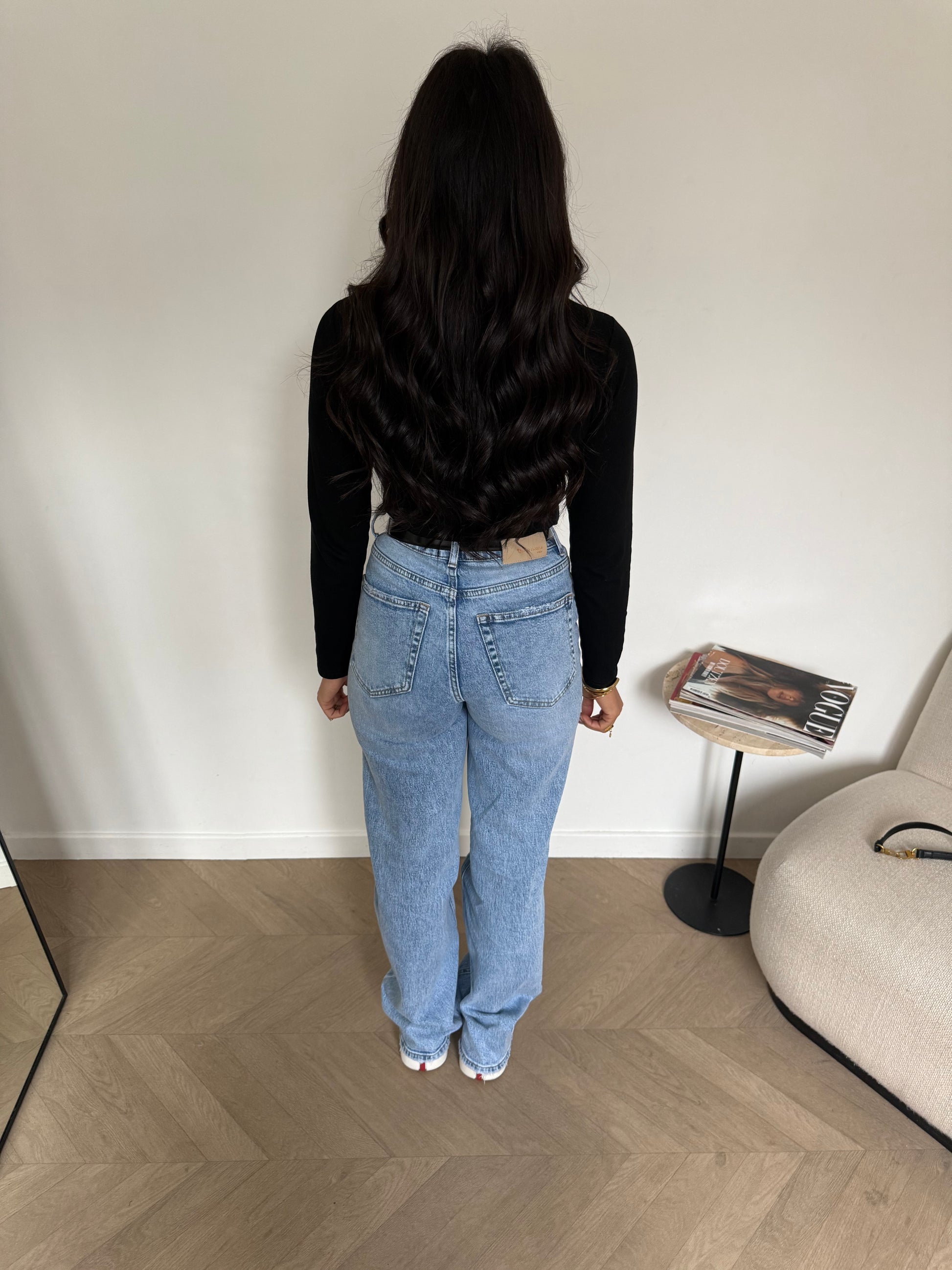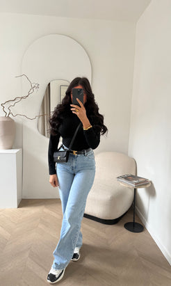 Jean droit  Composition :  97% COTON  3% ELASTHANNE  Le mannequin mesure 1m60 et porte une taille 36